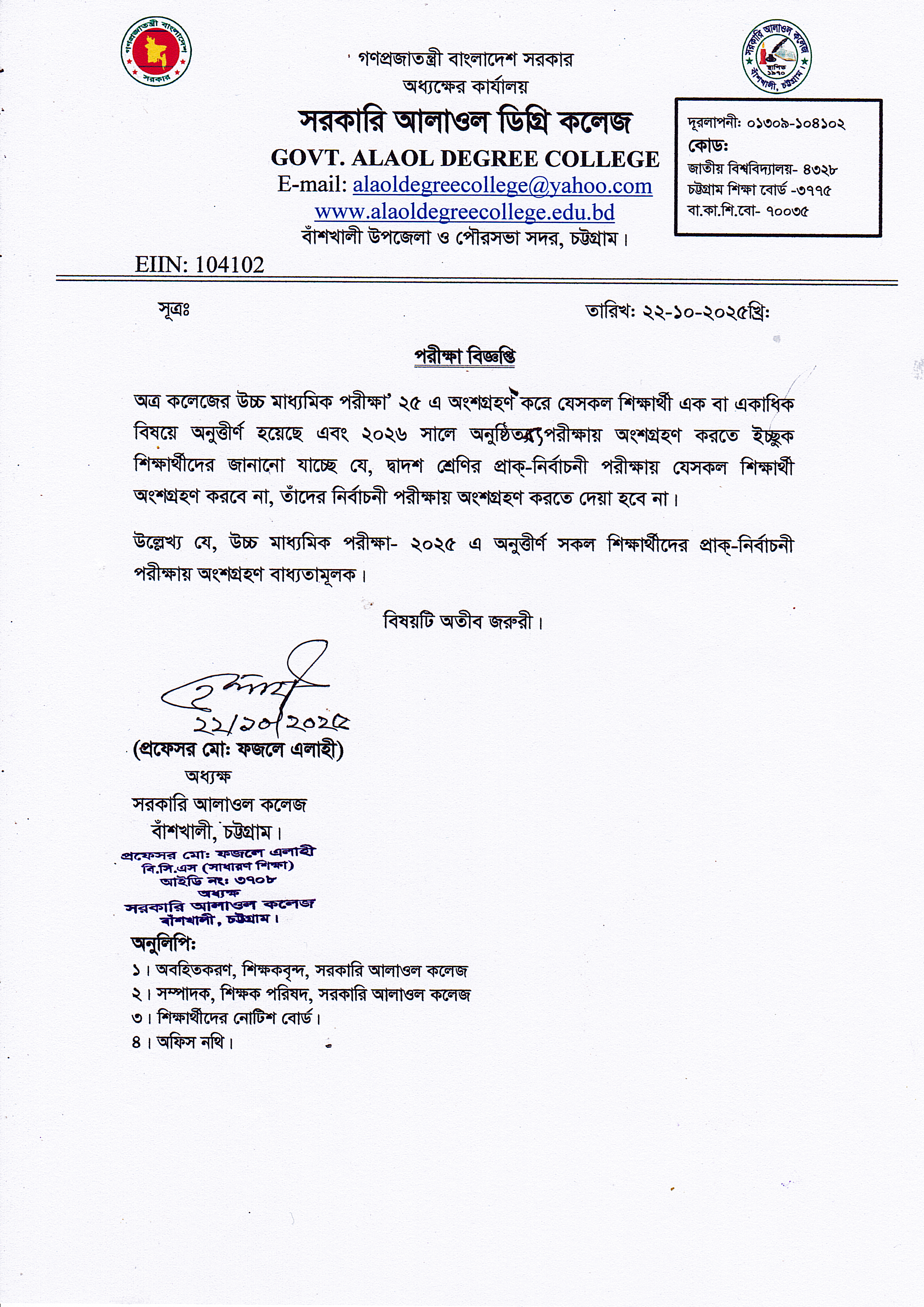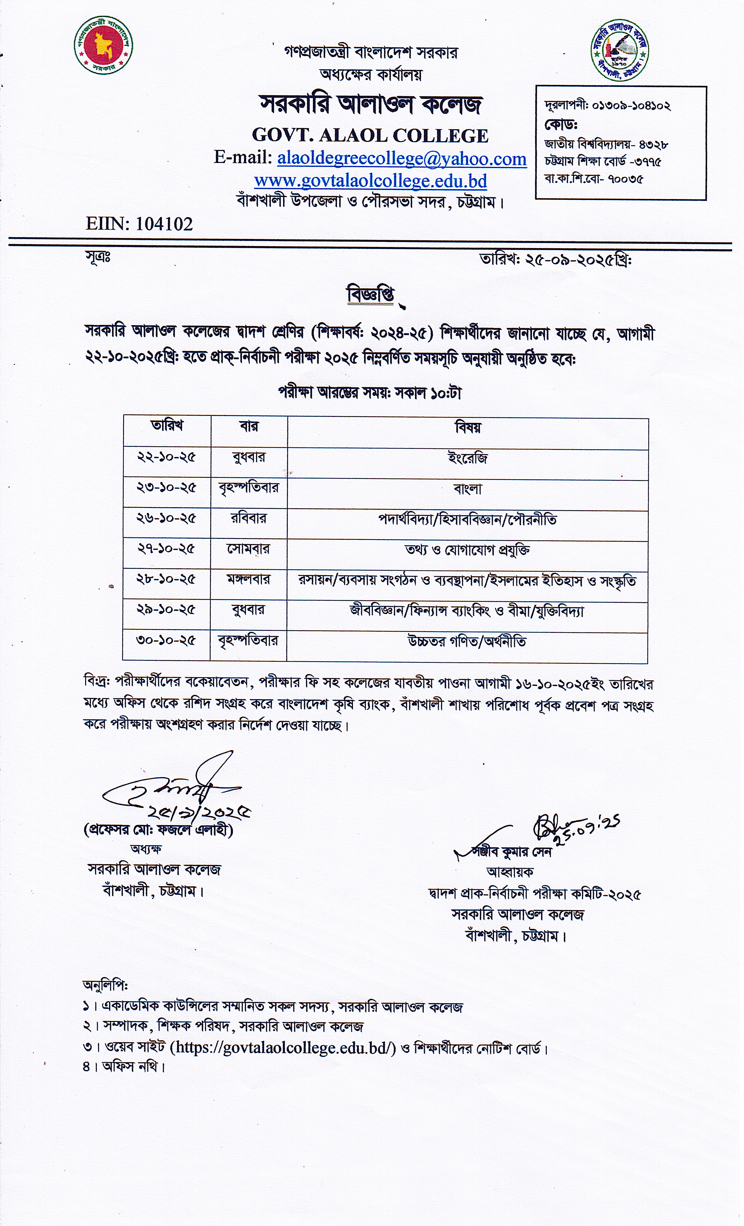 10/22/2025 পরীক্ষা বিজ্ঞপ্তি।