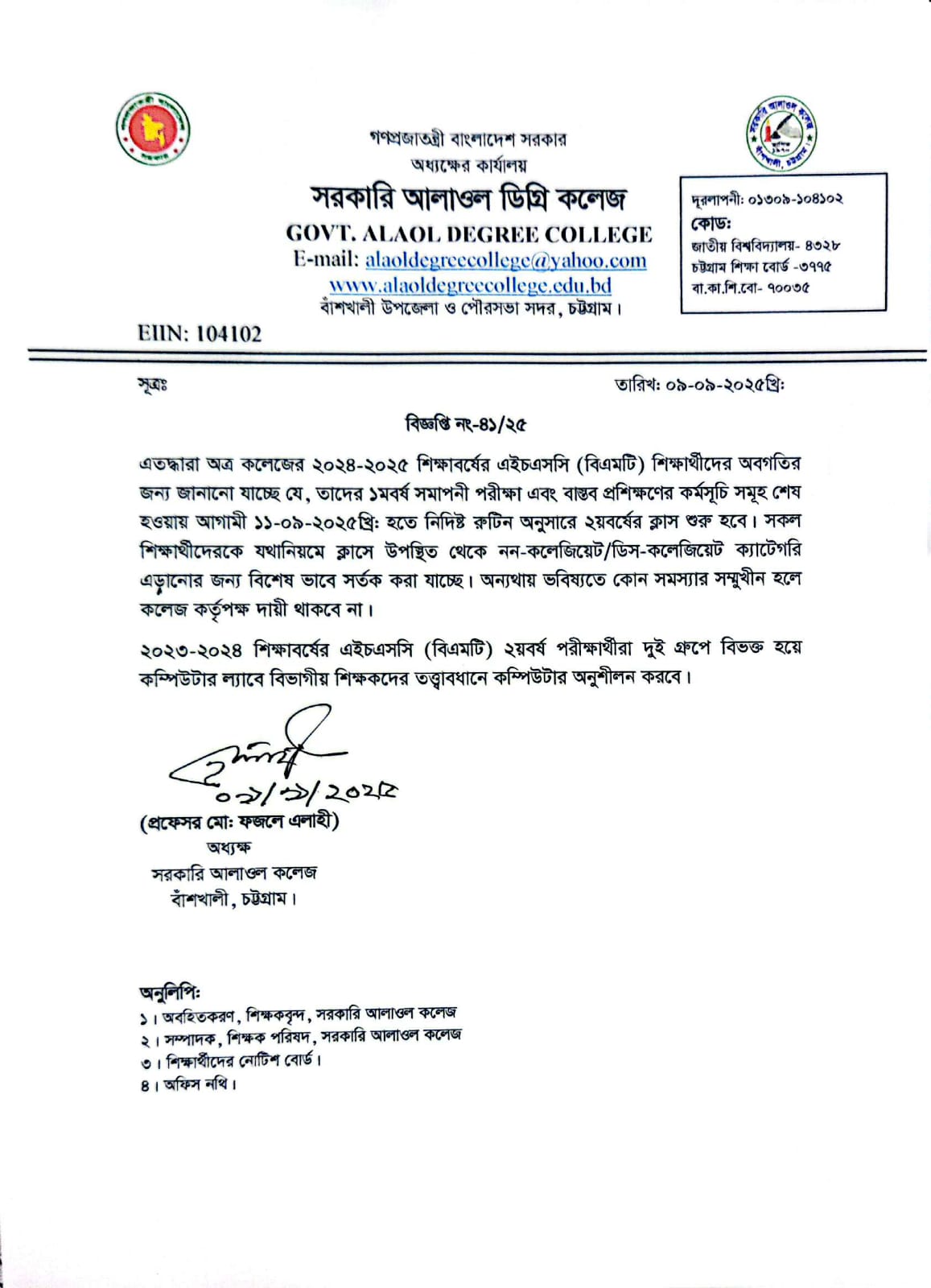 09/25/2025 কলেজের শ্রেণি কার্যক্রম বন্ধ সংক্রান্ত বিজ্ঞপ্তি।