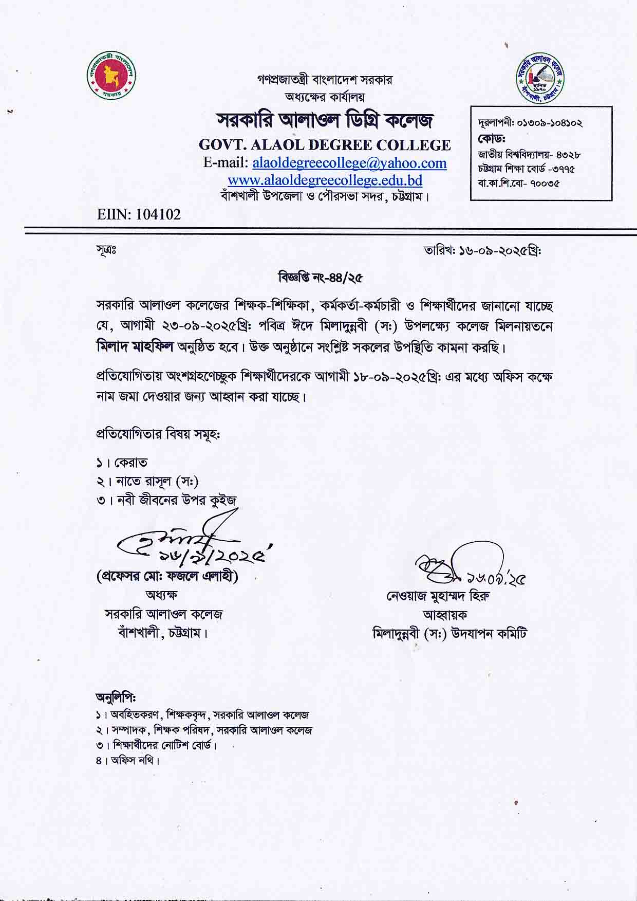 09/16/2025 পবিত্র ঈদে মিলাদুন্নবী (স:) সংক্রান্ত বিজ্ঞপ্তি।